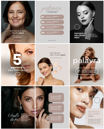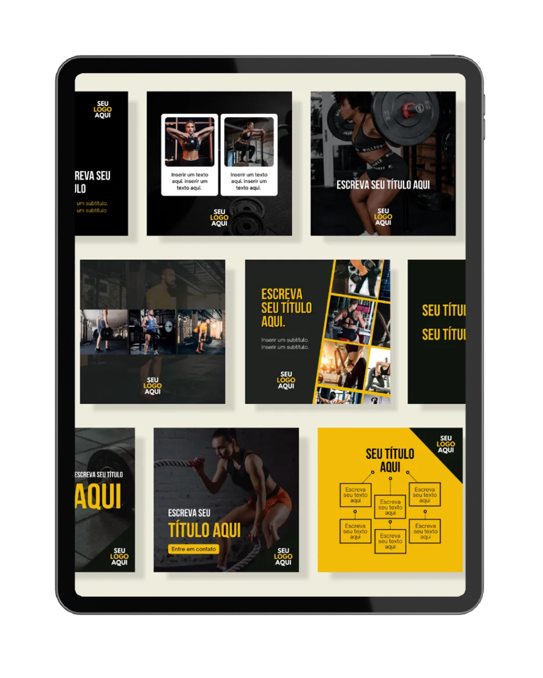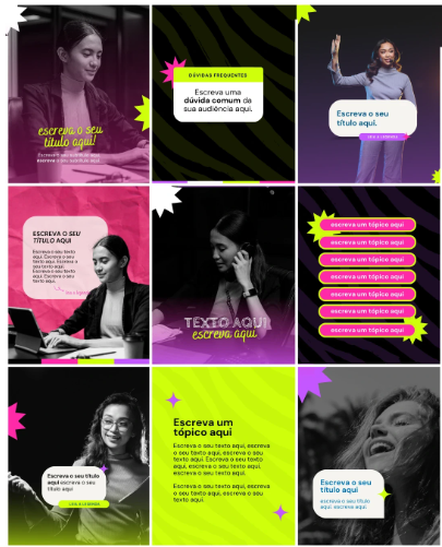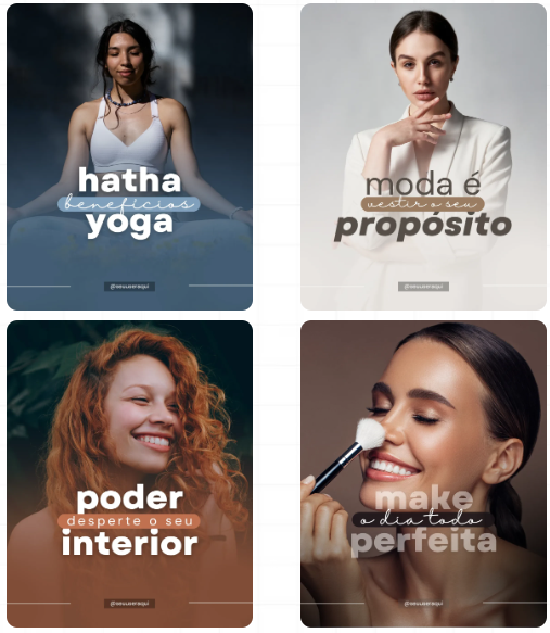 Você vai escolher a sua identidade visual e os seus modelos de posts favoritos. OBS.: vai poder usar todos os packs e modelos que desejar