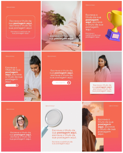 Posts prontos para personalizar e manter seu perfil sempre ativo.